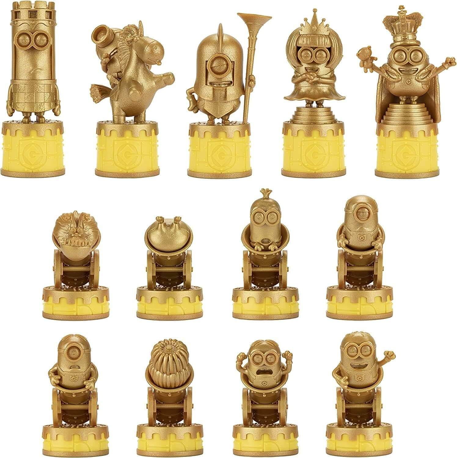 Minions Medieval Mayhem Chess Set Despicable Me featuring golden Minion chess pieces with unique designs.