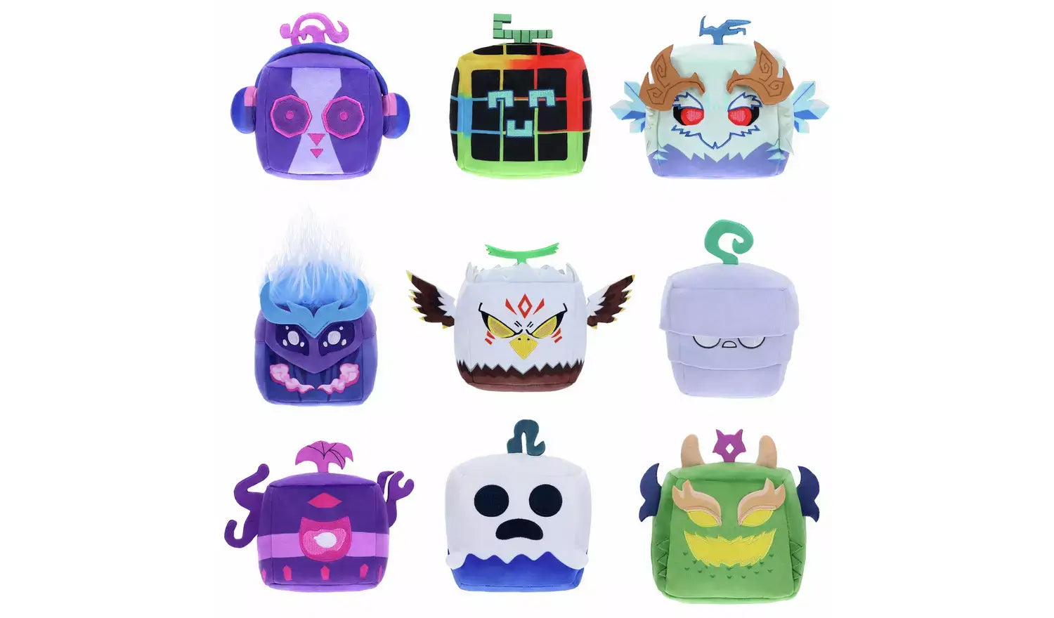 Blox Fruits Series 3 4" Collectable Plush featuring nine unique character designs in vibrant colors.